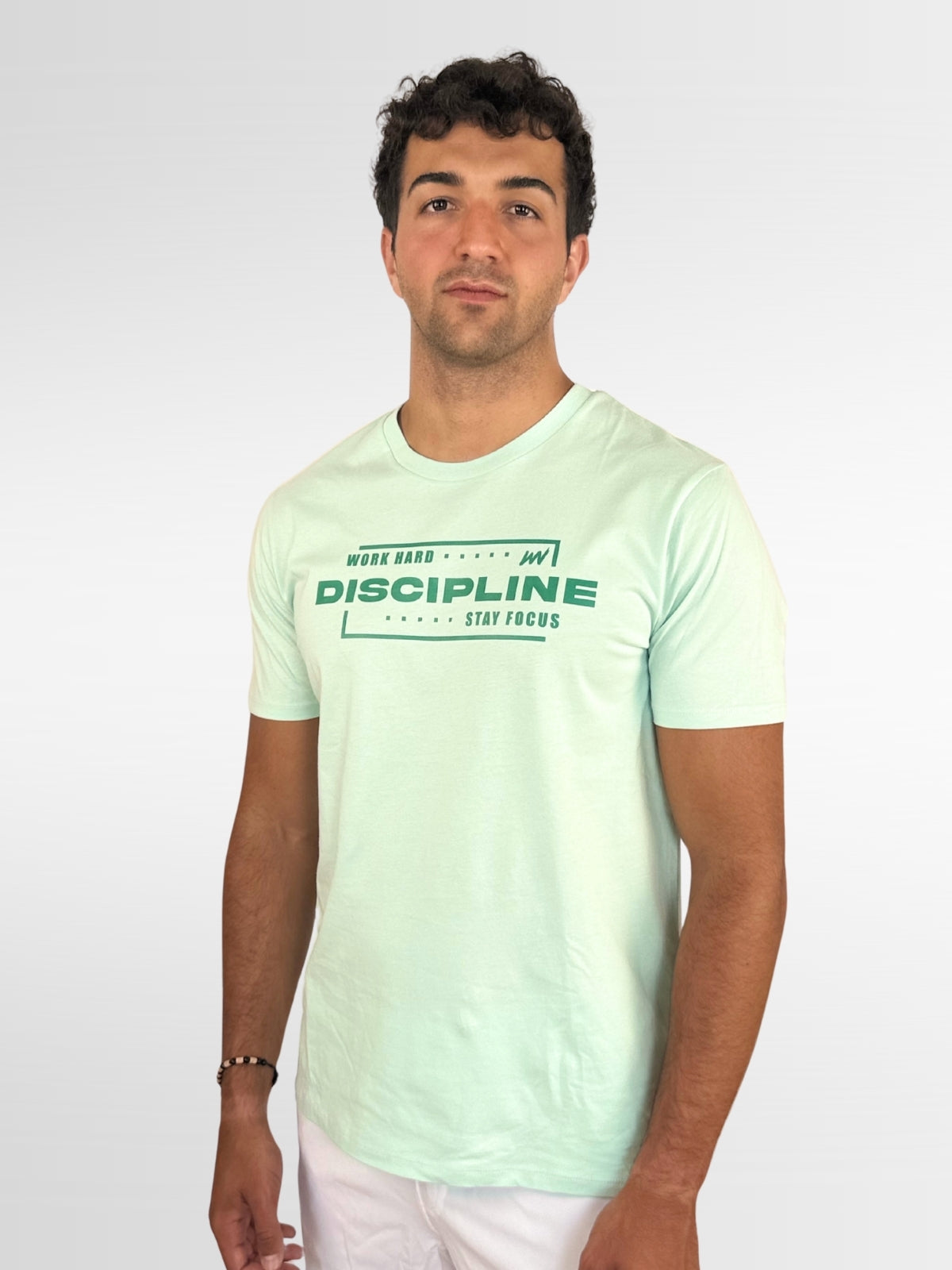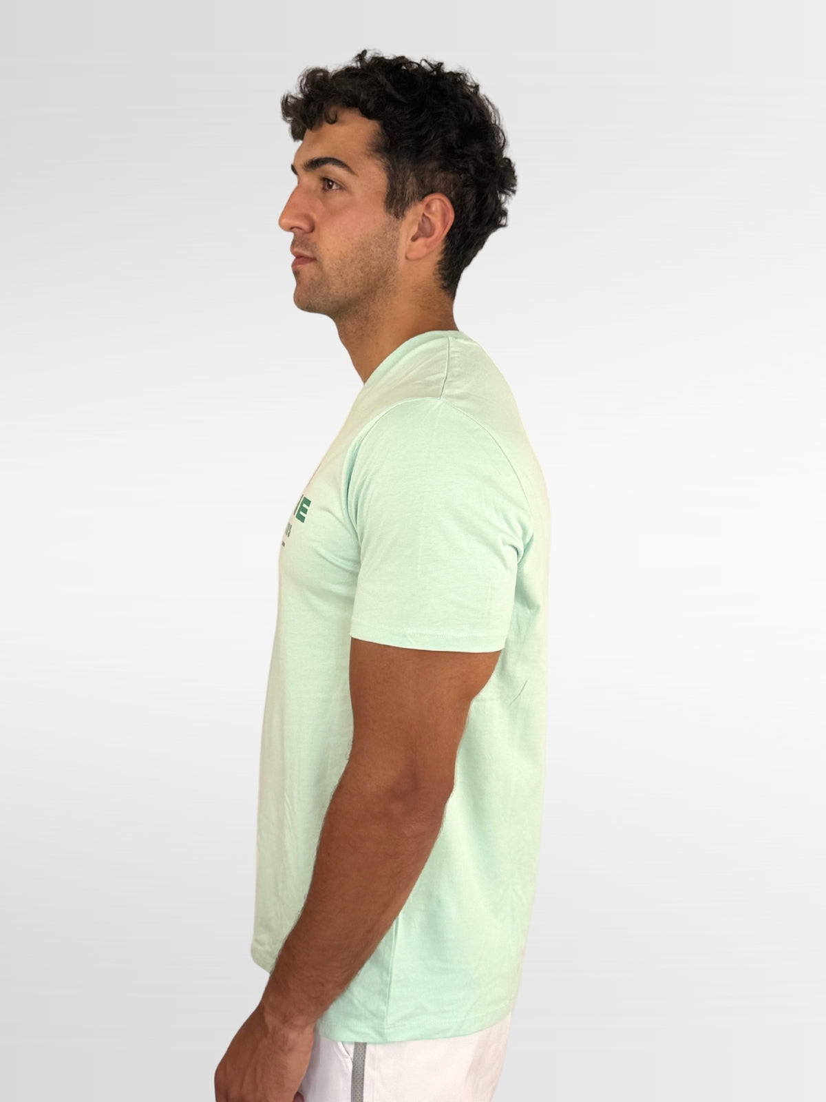 El tono verde suave Brook Green transmite equilibrio y constancia. Una camiseta que no se pone por moda, sino por principios.