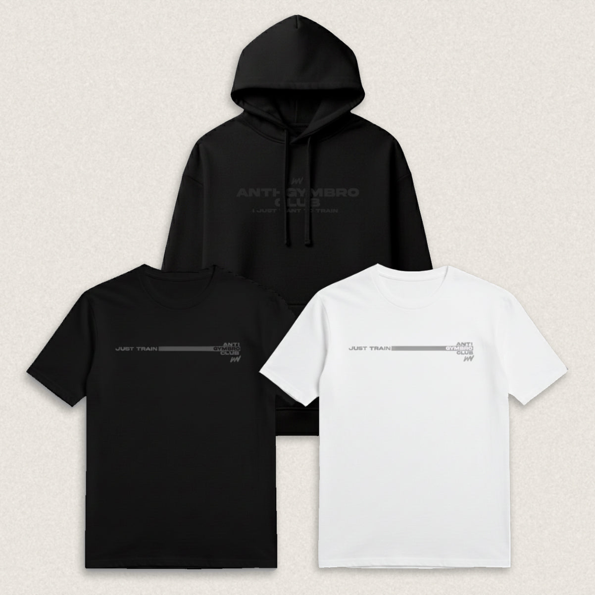 La JUST TRAIN /03 Black Hoodie te acompaña en los trayectos de casa al gym y en los días fríos, mientras que JUST TRAIN /01 White Core y JUST TRAIN /02 Black Core te permiten rotar camisetas técnicas entre sesiones de fuerza, cardio o entrenos más largos. Blanco para los días que quieres ir más limpio, negro para los días de batalla. Un conjunto pensado para aguantar rutinas reales: trabajo, familia, gimnasio y poco tiempo para complicarse.