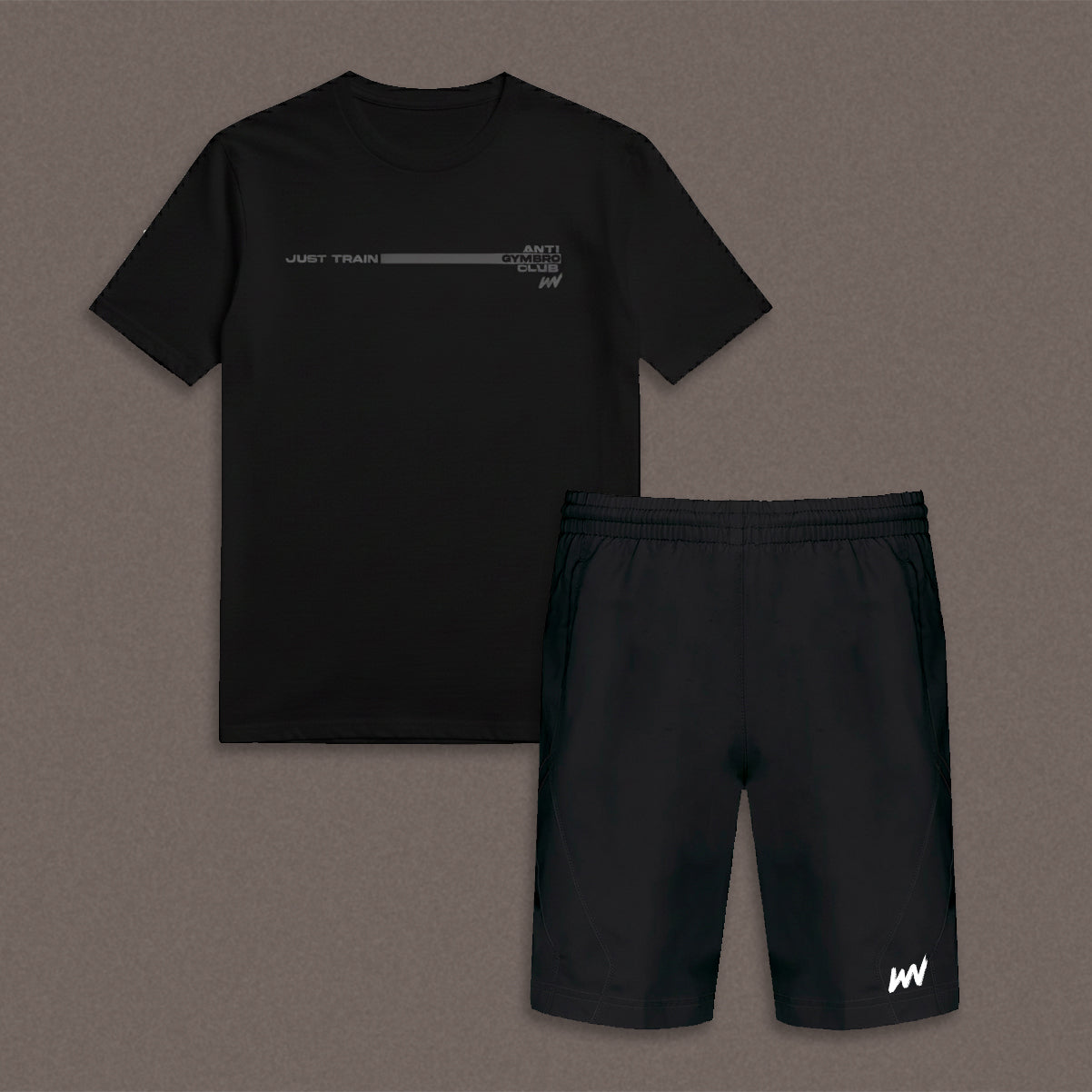 El MIRRA /02 Black & White Flow junta la camiseta técnica negra JUST TRAIN /02 Black Core con el short ESSENTIAL SHORTS /02 Black Line para montar un conjunto sencillo que funciona siempre. Negro sobre negro, limpio y fácil de combinar con cualquier sudadera o chaqueta, pensado para regalar algo que se va a usar de verdad en entrenos y en el día a día.