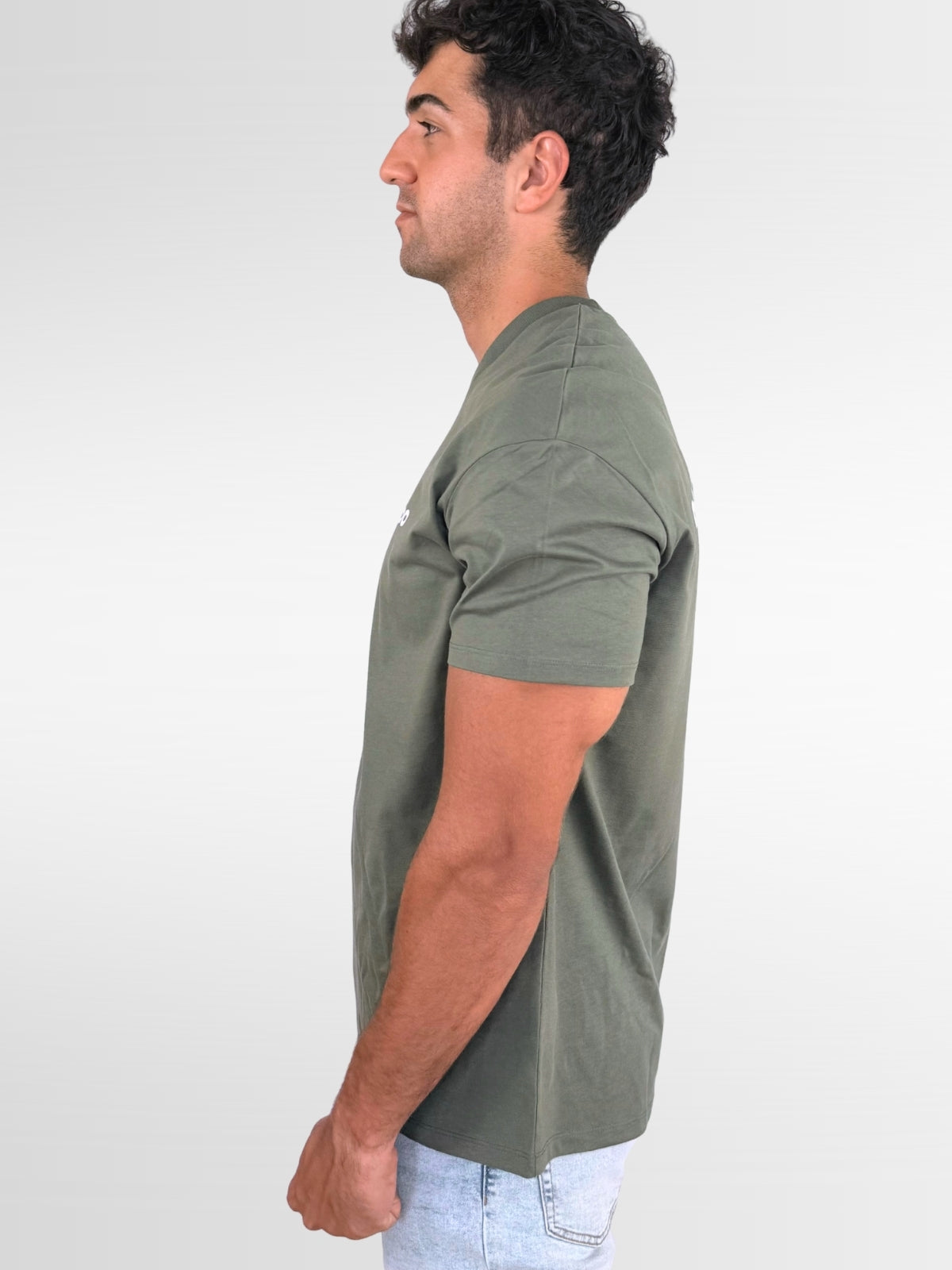 La NDO /04 Organic Khaki está confeccionada en 100% algodón orgánico de 200 g/m², con cuerpo y una caída natural que acompaña sin estorbar. Su corte recto con hombro caído le da un toque desenfadado, moderno y funcional.