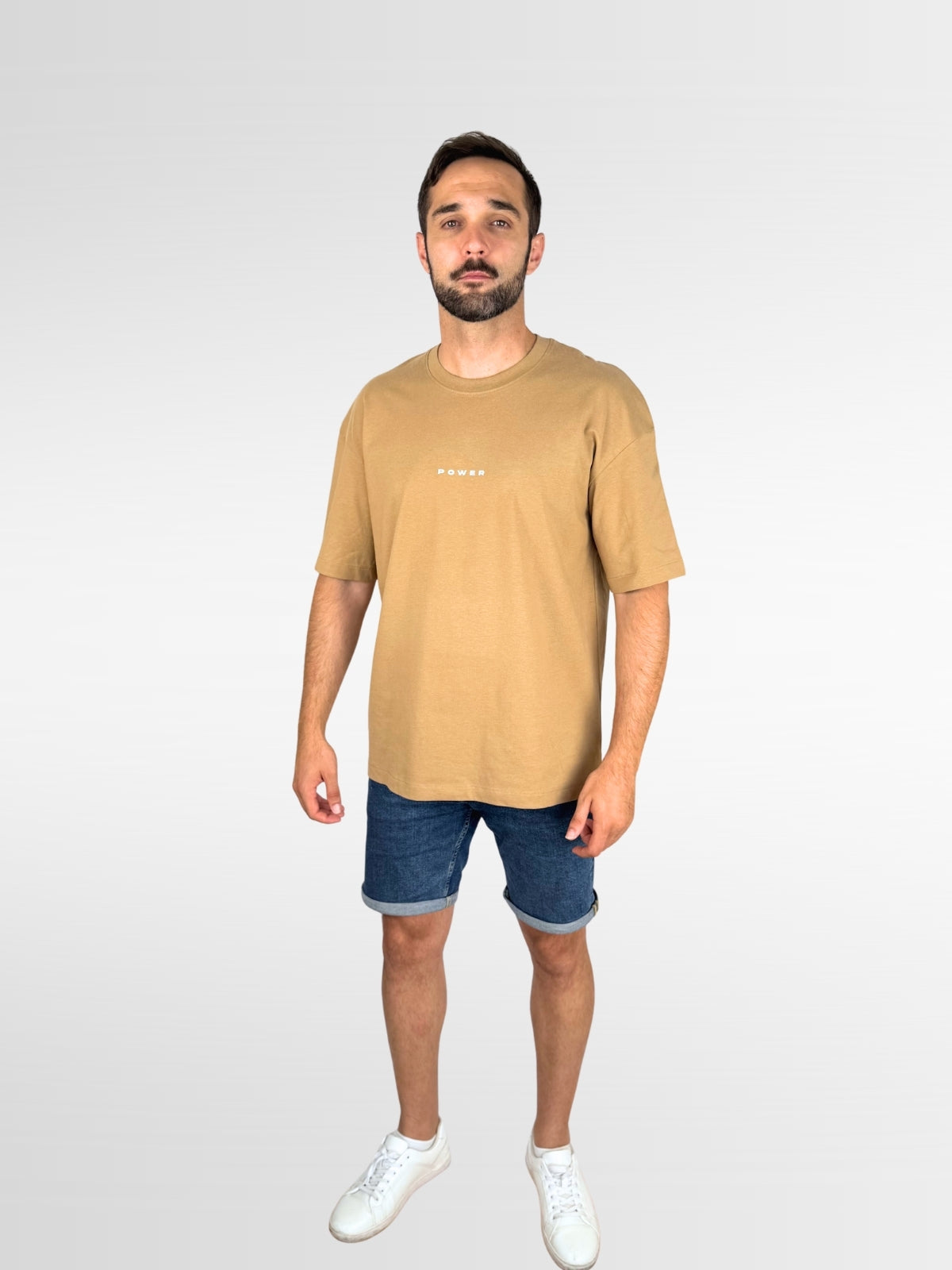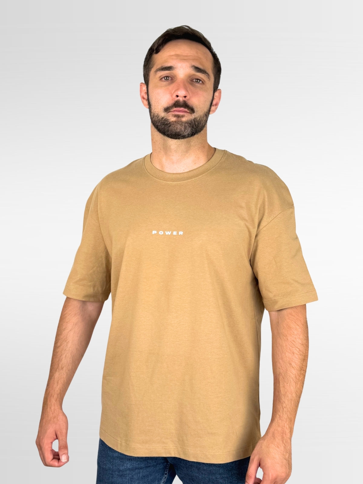 La POWER /06 Camel está diseñada con corte oversize y hombro caído para un look relajado y con presencia.