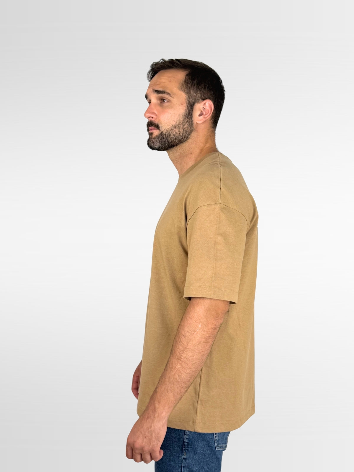 El tejido es de 100% algodón de alto gramaje (220 g/m²), lo que le da estructura sin perder suavidad ni caída.