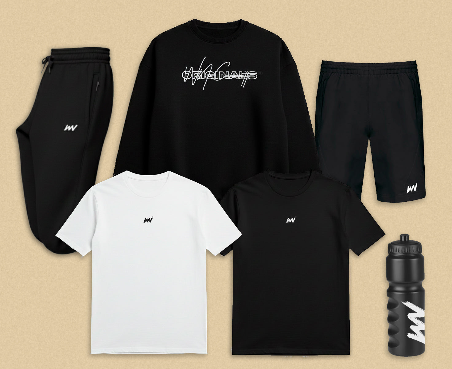 La ORIGINALS /08 Black Premium aporta ese punto de sudadera sólida y limpia para el frío y los trayectos, el ORIGINALS /10 Black Pants funciona como pantalón largo cómodo tanto para el gimnasio como para moverte por la ciudad, y las camisetas técnicas ESSENTIAL /02 Black Core y ESSENTIAL /01 White Core te permiten rotar entre días de fuerza, cardio o rutinas más largas. Cuando toca entrenar con más calor o apretar pierna, entra el ESSENTIAL SHORTS /02 Black Line para ganar libertad de movimiento. Es un conjunto pensado para usar toda la semana: de casa al gym, del gym a la calle y vuelta a casa, listo para los objetivos que vengan.